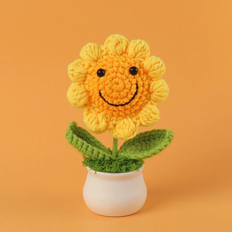 Crochet Flower Pot High-Quality Mother's Day Gift, Home and Car Decoration, Luxury Artificial Handmade Sunflower Crochet