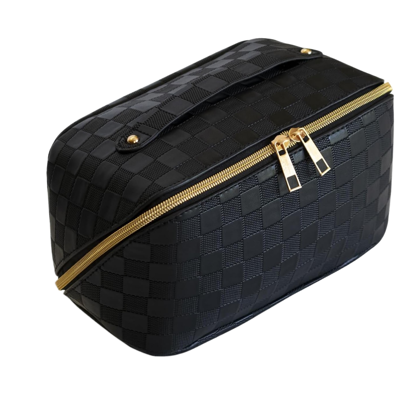 Checkered Cosmetic Bag Large Travel Makeup Bag Waterproof Big Cosmetics bag for Women Portable Handle Makeups Organizer Toiletry Purse (Large)3