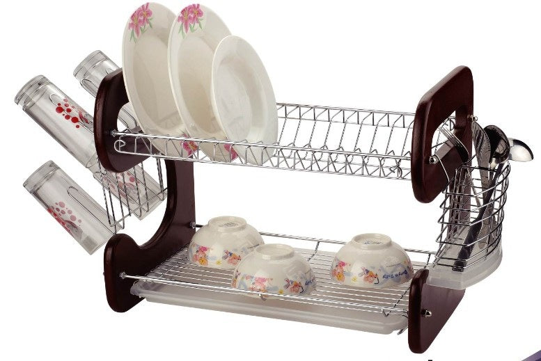 Multi-functional black plastic rimmed dish rack, kitchen dish storage rack, utensil holder, foldable draining dish rack, sink drainer